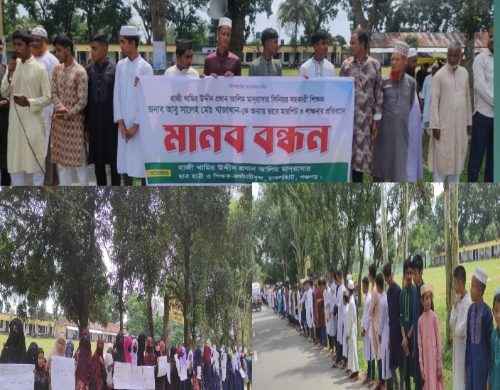 পঞ্চগড়ে শিক্ষক কে শারীরিক নির্যাতন এর বিরুদ্ধে মানব বন্ধন