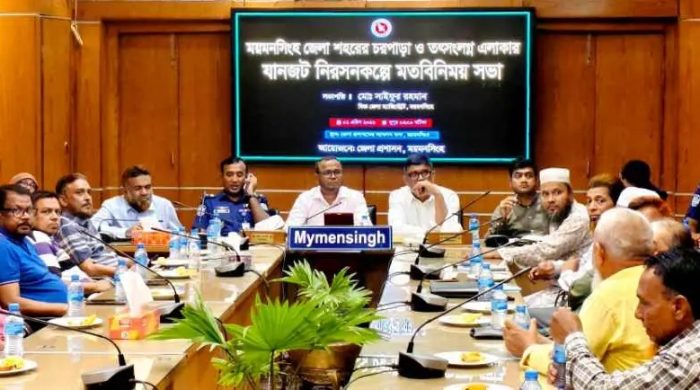 ময়মনসিংহ নগরীর চরপাড়া এলাকায় যানজট নিরসনে মত বিনিময় সভা অনুষ্ঠিত।