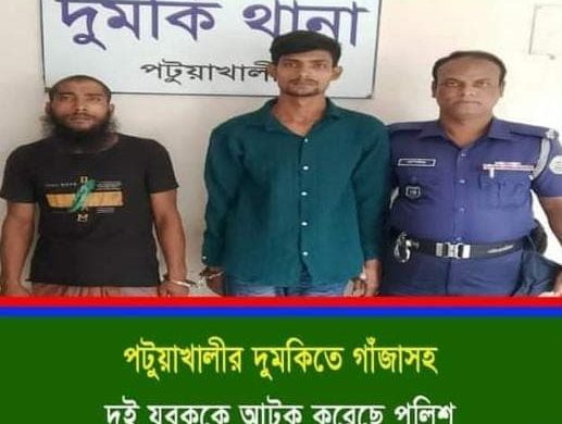 পটুয়াখালীর দুমকি উপজেলায়, গাঁজাসহ দুই যুবককে আটক করেছে পুলিশ।।